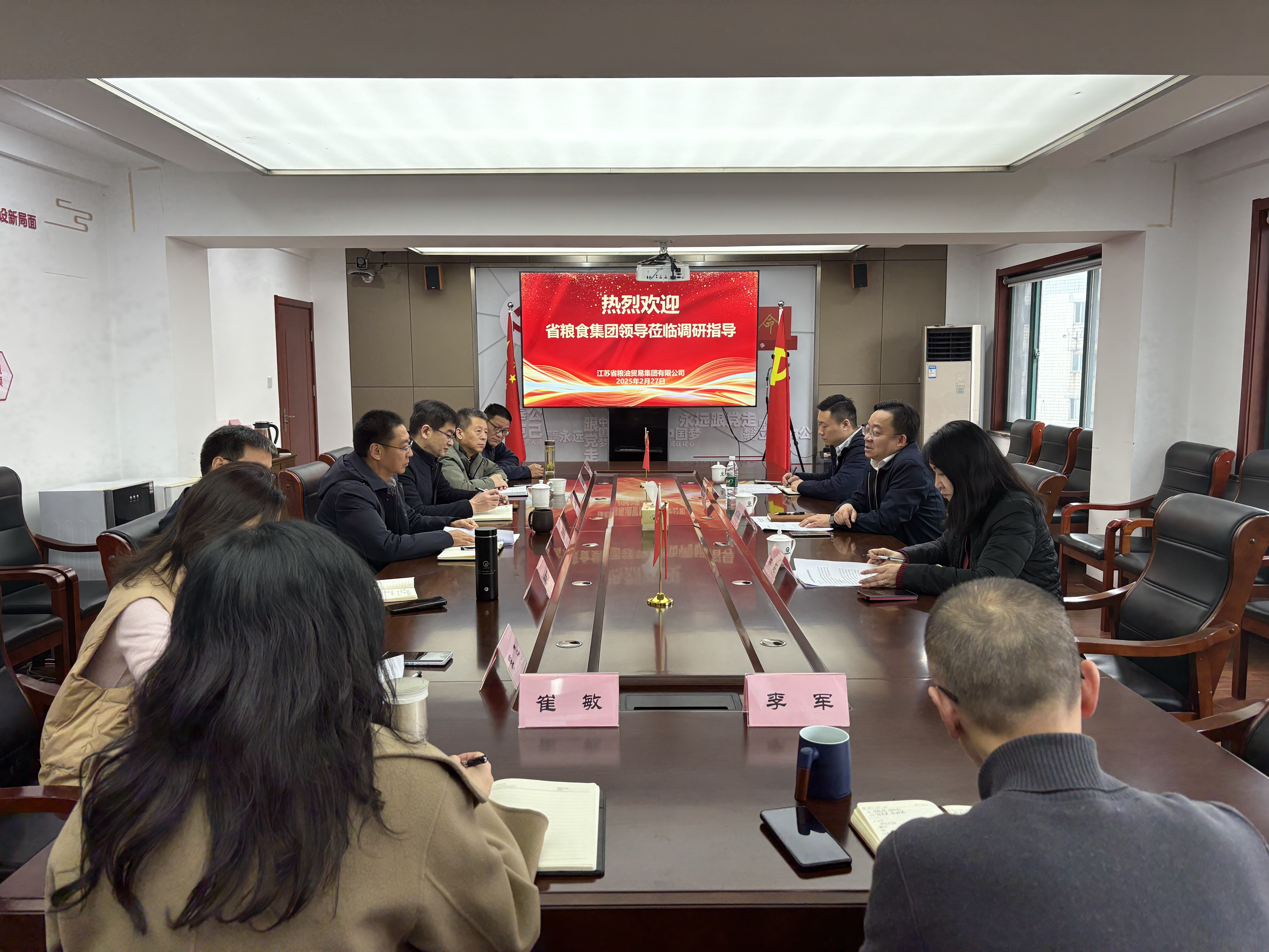 2月28日,williamhill官网纪委书记朱永钢带队赴粮贸集团开展工作调研。座谈会上,调研组听取粮贸集团党总支书记、执行董事、总经理黄国波关于企业合并重组、党业融合等方面的工作汇报,并与企业领导班子成员开展谈心谈话。