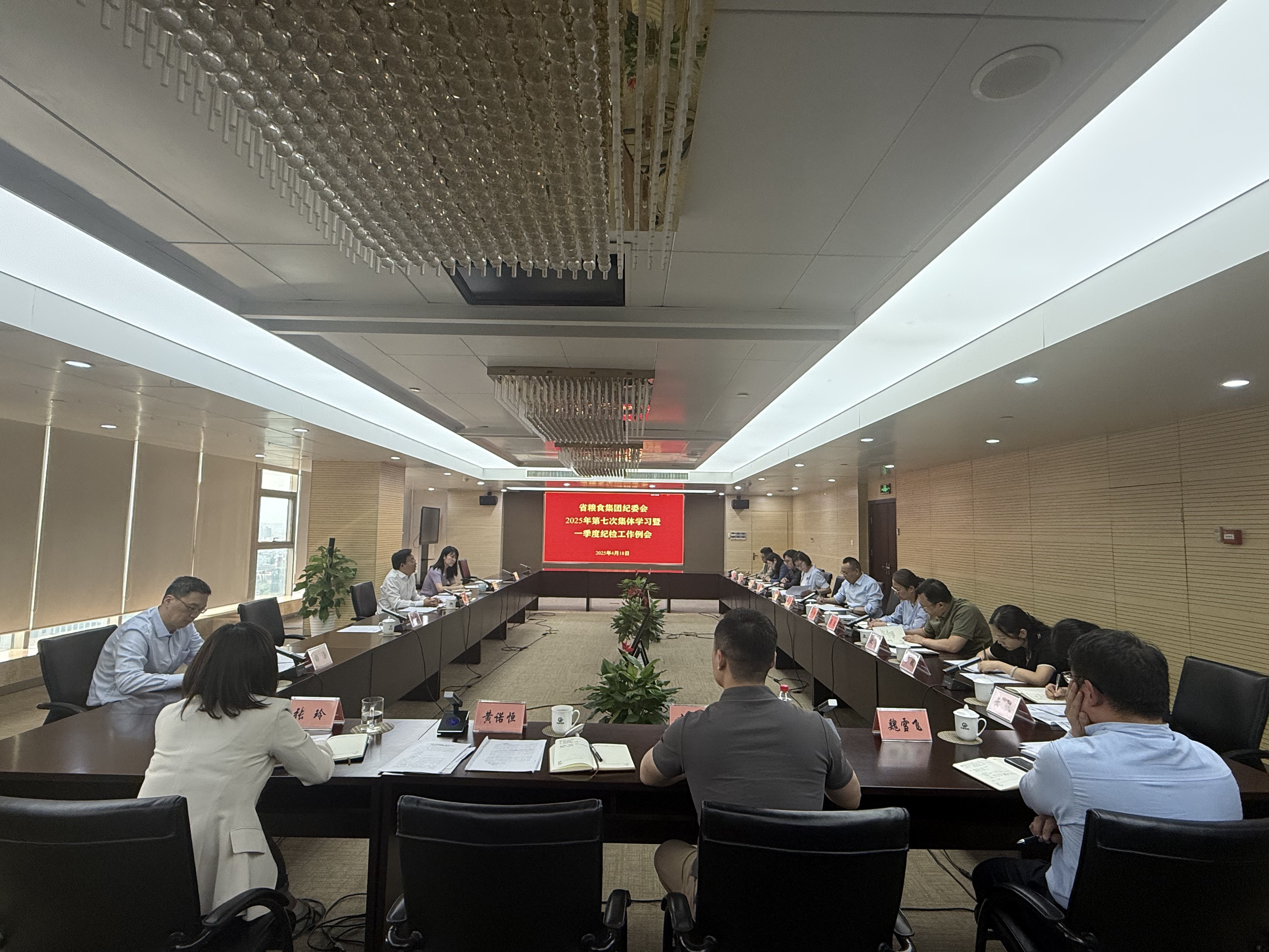 会议学习传达了习近平总书记在贵州考察时重要讲话精神,研读了《习近平关于加强党的作风建设论述摘编》,并集体学习了中共中央、国务院印发的《加快建设农业强国规划(2024-2035年)》,中纪委书记李希在湖南调研讲话精神及省纪委书记张忠署名文章《以高质量监督办案护航高质量发展大局》。与会人员集体观看中纪委专题教育片《反腐为了人民》第三集《揭开腐败隐身衣》,并对《国有企业领导人员廉洁从业若干规定》进行深入解读。会上省储备粮公司和三零公司分别对一季度工作情况进行了全面总结和交流。
