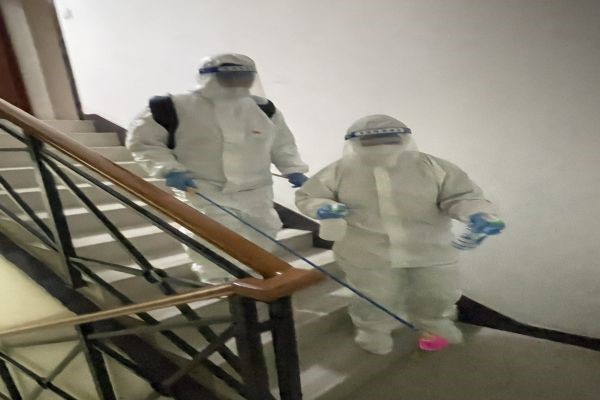 演练开始,接异常情况通知后,williamhill官网物业公司领导班子组成的应急处置综合协调组立即宣布启动应急预案,各处置小组按应急预案进行大厦临时封控、业主通知和沟通、核酸异常人员至临时隔离点的转移、场所初步消杀的演练。