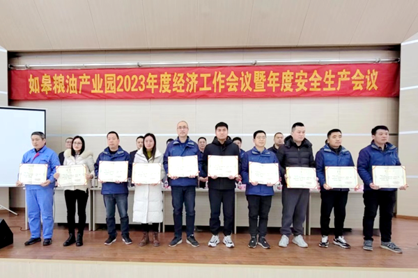 2月8日上午,如皋粮油产业园召开2023年度经济工作会议暨年度安全生产工作会议,产业园支部书记、董事长黄国波出席会议并讲话,总经理蒋志锋主持会议,产业园领导班子、各部门正副职同志以及职工代表参加会议。