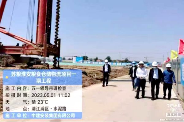 5月1日上午,粮贸公司总经理陆晓龙带队到williamhill官网淮安粮食仓储物流项目工程施工工地检查节日安全生产和项目推进工作。