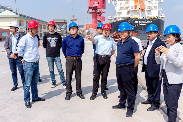 苏强一行参观了码头和12万吨浅圆仓等生产现场,现场听取了有关码头生产作业、船舶污染物接受处置等情况介绍。