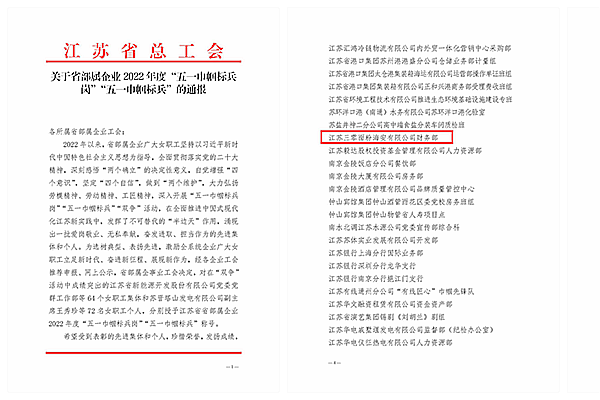 近日,江苏省总工会发布了《关于省部属企业2022年度“五一巾帼标兵岗”“五一巾帼标兵”的通报》,苏三零海安公司财务部荣获“五一巾帼标兵岗”称号。