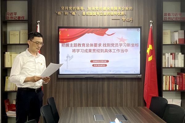 6月5日,为认真贯彻落实集团党委主题教育安排部署,推动学习贯彻习近平新时代中国特色社会主义思想主题教育走深走实,投资公司党支部彭涛书记以《把握主题教育总体要求,找到党员学习新坐标,将学习成果贯彻到具体工作当中》为主题,为支部全体党员上了一堂立意深远、思想深刻的专题党课。