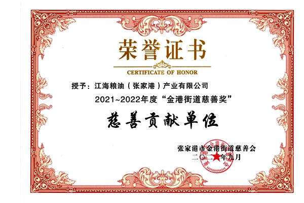 会上,张家港产业公司荣获“2021~2022年度金港街道慈善奖——慈善贡献单位”荣誉称号。