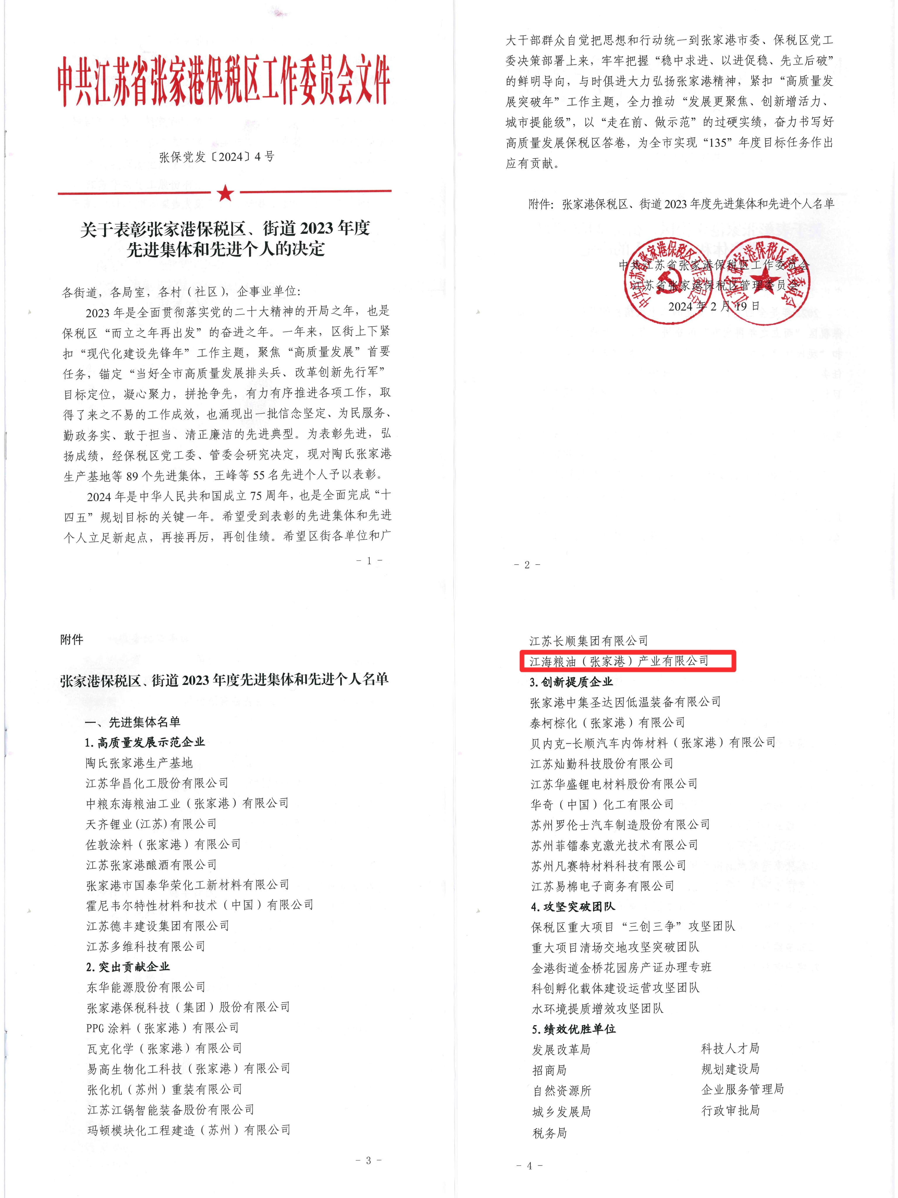 2月19日,张家港保税区、街道召开作风建设会议,张家港市委常委、保税区党工委副书记、管委会副主任陆崇珉等领导出席会议。会议对张家港保税区2023年度先进集体和先进个人进行了表彰,张家港产业公司作为突出贡献企业被授予奖牌。