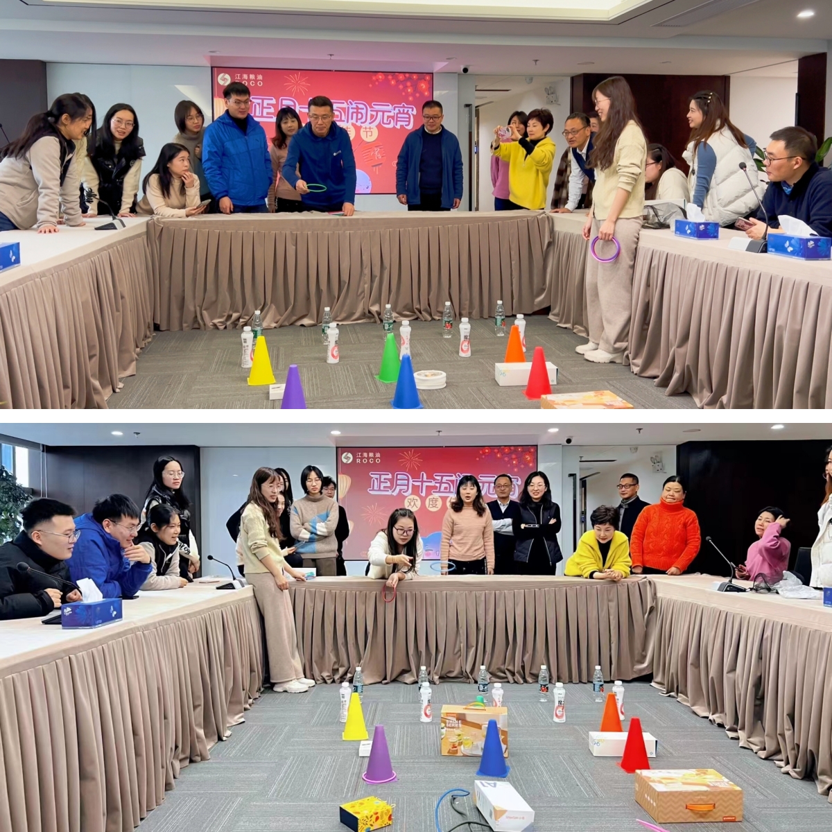 “到我大展身手了”“我试试这个豆沙馅的”“等一下,让我先套”“我的奖品一定最多”……本次活动设置了巧手包汤圆、好运套圈等精彩项目,让大家在手工与运气的比拼中感受节日的快乐。茶歇室里早早就准备好了糯米粉、红豆馅等各种材料,大家卷起衣袖,一双双舞动的巧手,通过揉、压、捏、包、搓的功法,个个圆滚滚的汤圆就此成形。套圈活动现场热闹非凡,小小的套圈满场纷飞,大家的热情一次次被点燃,欢笑声、喝彩声、掌声不绝于耳,在欢笑声中圈住自己心仪的“战利品”。