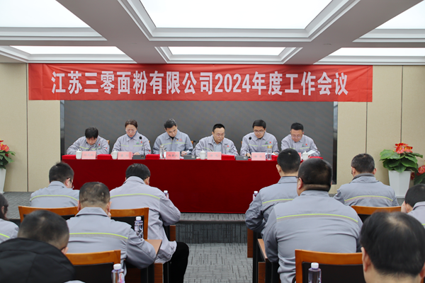 会上,苏三零公司总经理助理谢彬同志传达了集团2024年度工作会议精神,徐俊副总经理宣读了对苏三零2023年度优秀团队、文明科室、优秀员工、文明职工和“职工之星”的表彰决定。苏中公司、海安面粉公司、粮谷运营中心及两工厂销售负责人作了表态发言。苏中公司、海安面粉公司代表现场递交了经营指标责任承诺书。