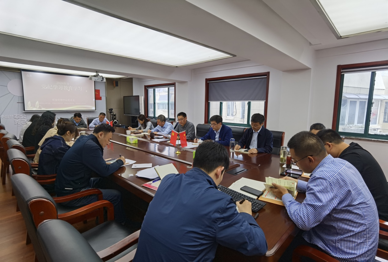 4月28日上午,贸易管理中心党总支召开党员大会,深入开展党纪学习教育,党总支全体党员参加会议。