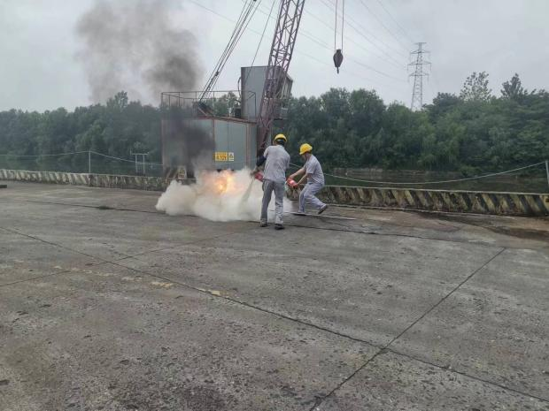 参训人员在苏中公司码头集合,按预先制定的演练方案开展消防安全应急救援演练。苏中公司安全管理人员重点讲解了灭火器的种类、使用方法以及消防灭火要领等。参训人员在安全管理人员的指导下,依次使用灭火器,准确规范操作,迅速扑灭火焰,达到预期的演练效果。