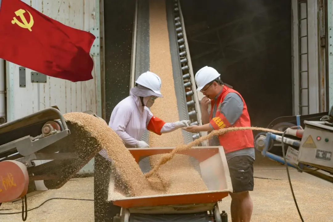 在收购现场,和茂库党支部督导各部门及时优化云服务“一卡通”系统,优化结算流程、管控入库风险,不断创新为农服务方式、提升为农服务水平;金湖库成立1支平均年龄32岁的“售粮服务青年先锋队”,以“江苏省储备粮公司为农服务‘10条’举措”为抓手,积极开展政策宣讲,发布粮食收购质量、等级、价格及服务承诺,让青年党员在大战大考中勇挑重担、担当作为;马厂二库党支部全体党员齐上阵,坚持早开门、晚收磅,设置休息区,提供茶水及医药箱,并配备了藿香正气水、仁丹、清凉油等防暑降温药品;高港库党支部把党建工作贯穿到夏粮收购的各个环节,收购过程严格执行政策,张贴收购公告和监督电话,每日收购价格和质量标准上墙,做到以质论价,公开透明,让售粮人卖放心粮、舒心粮、明白粮,让党旗在夏粮收购一线飘扬。