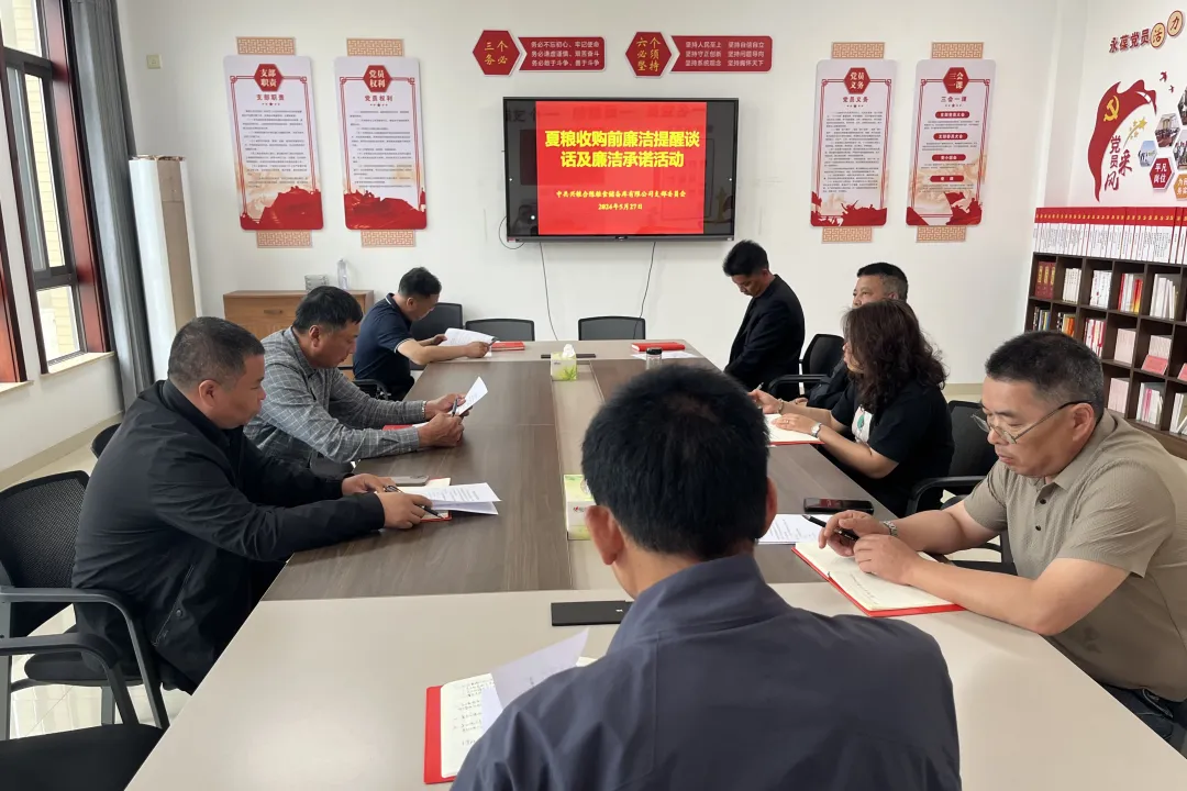 夏粮收购前夕,合陈库党支部组织党员干部职工开展廉洁提醒谈话,签订廉洁承诺书,筑牢廉洁思想防线