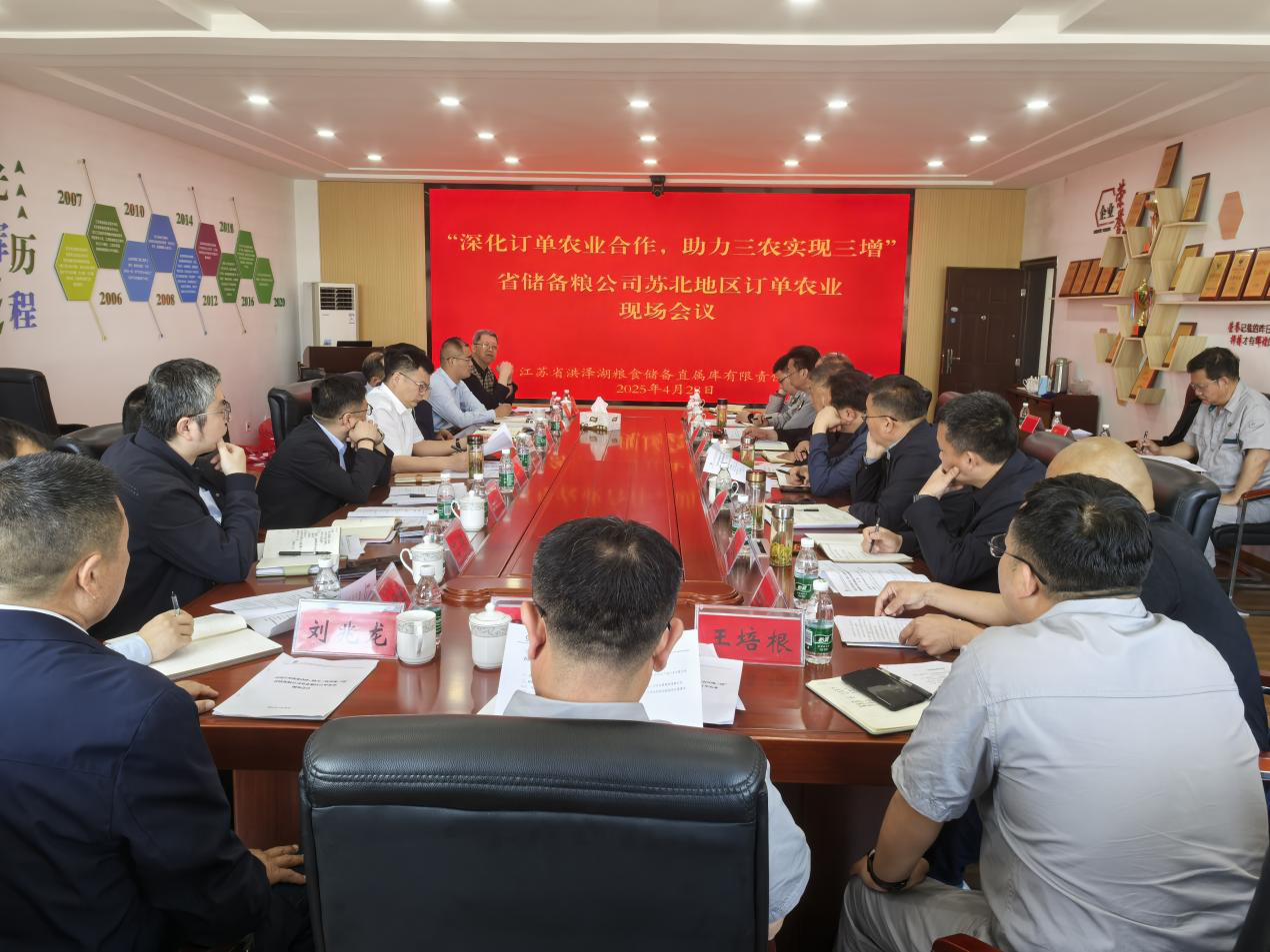 省储备粮公司在洪泽库、通州库召开苏常镇通淮地区订单农业现场会,会议以“深化订单农业合作,助力三农实现三增”为主题,旨在贯彻落实省委省政府关于服务乡村振兴的工作要求,充分发挥集团公司和省储备粮公司在粮食保供、稳定市场、促进农业发展中的重要作用,扛稳扛牢保障粮食安全的政治责任,促进三农实现三增。省储备粮公司纪委书记徐俊、副总经理丁希华、苏常镇通淮地区企业代表、江苏银行代表、种植大户等参加了会议。