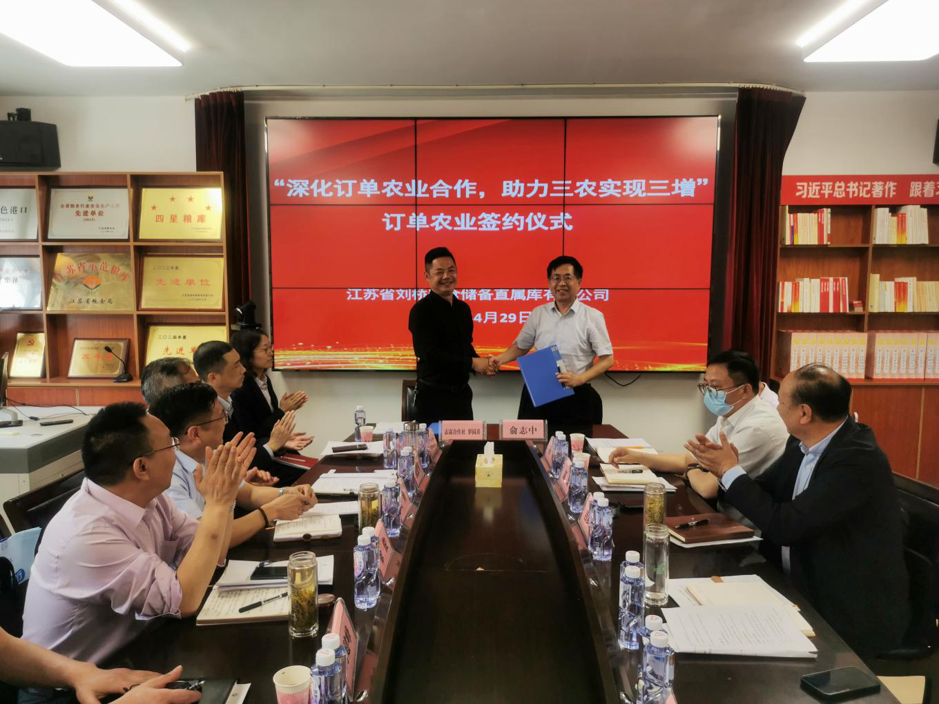 其他参会代表作了交流发言,洪泽库、通州库分别与种植大户签订了2025年小麦订单农业协议。