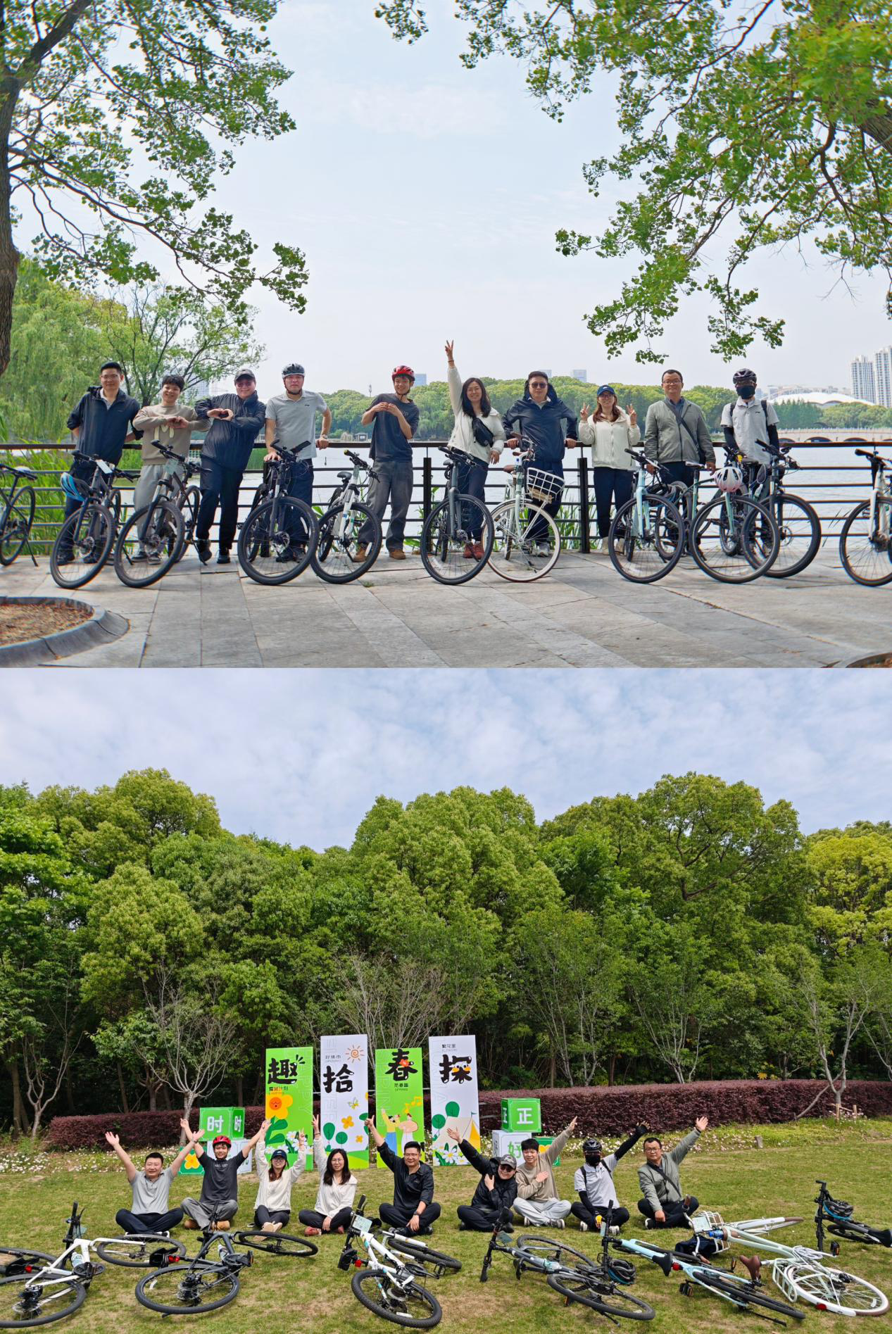 活动现场,骑行队伍整装待发,活动采取自由骑行和竞赛的方式进行,旨在通过低碳出行、自然探索与团队挑战,增强青年人的团队协作精神,培养团队意识,传递“绿色环保”的价值理念,弘扬五四精神,传承爱国主义情怀。全体员工骑行穿过林荫大道,穿梭于芦苇湿地与湖畔倒影间,打卡“百草园、民法典科普基地、农耕文化馆、海棠园”等景点,用镜头记录下骑行精彩瞬间。