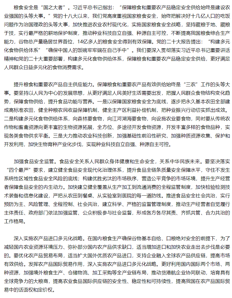 保障粮食和重要农产品稳定安全供给
