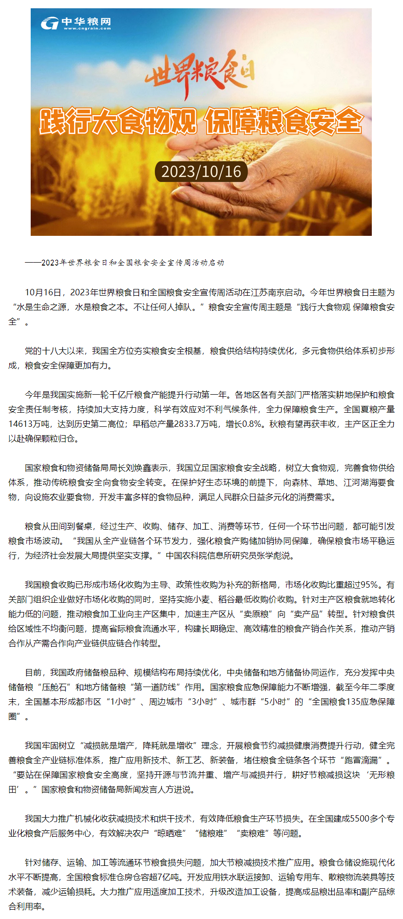 践行大食物观 保障粮食安全