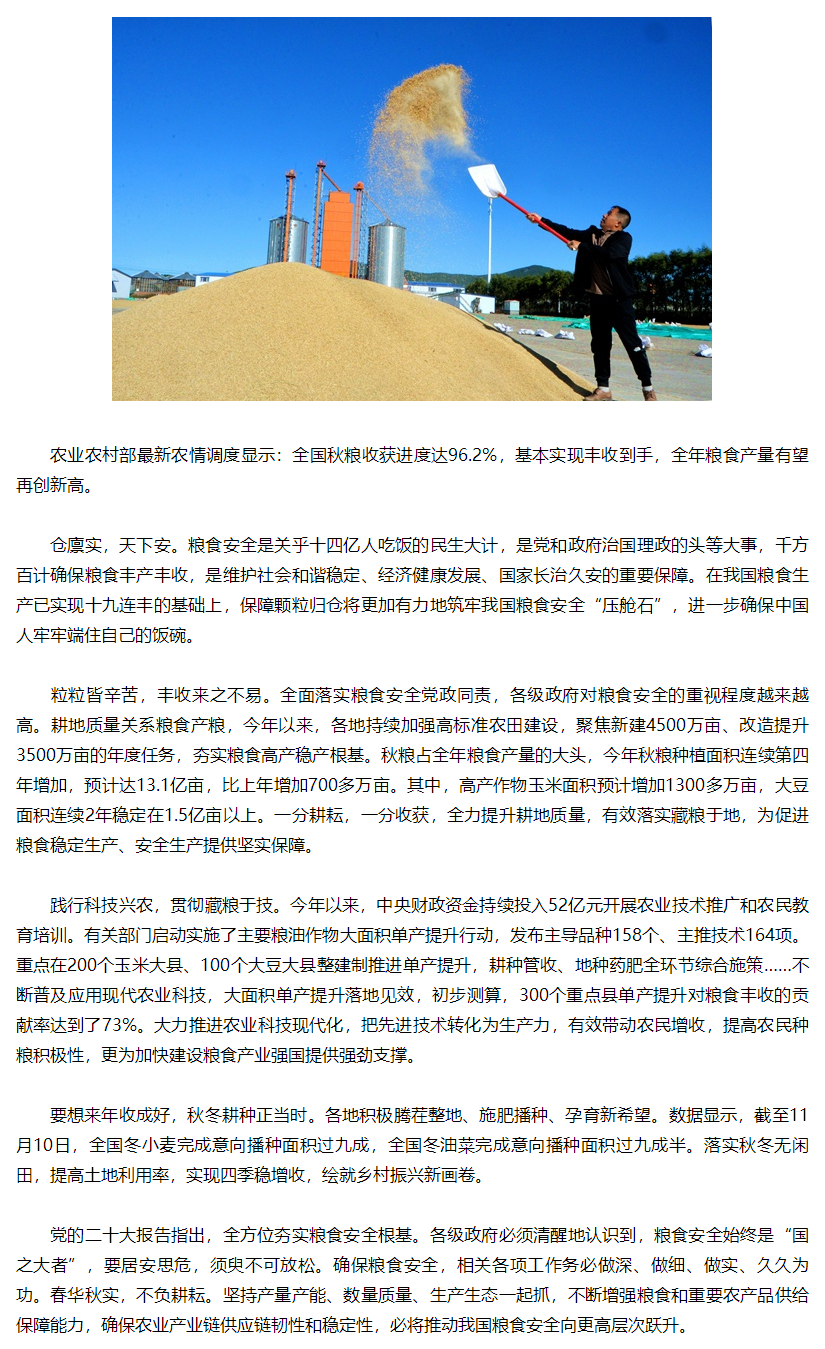 颗粒归仓筑牢中国粮食安全“压舱石”