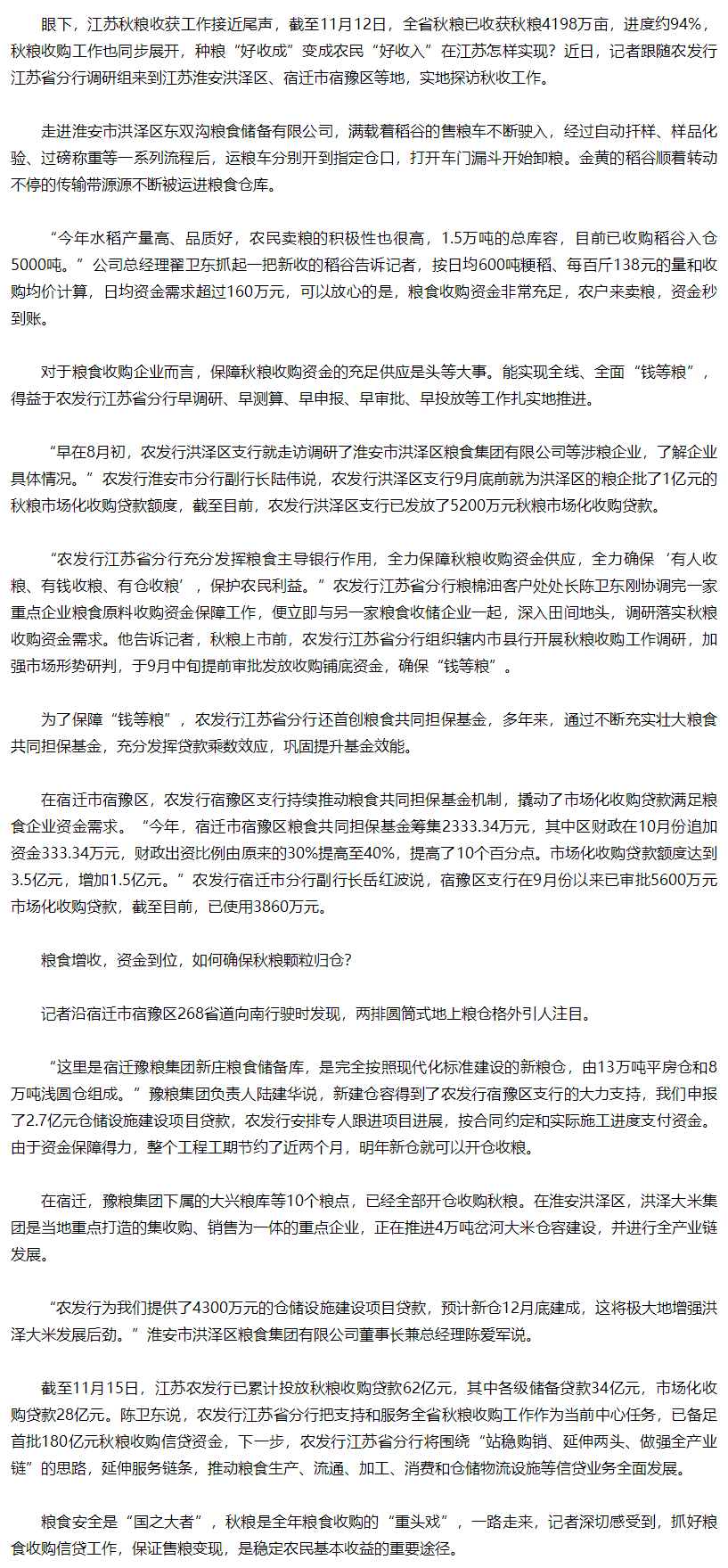 探访江苏秋收::“钱等粮”守护农民利益