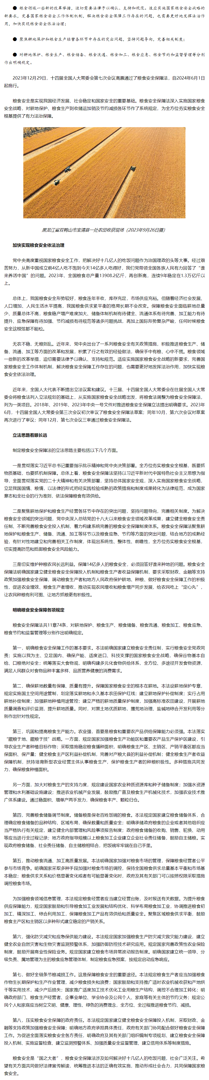 夯实粮食安全保障法治根基