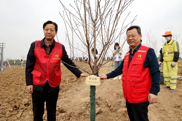 春风和煦,万物复苏。3月11日上午,在葛塘街道接待寺社区全民义务植树基地,省粮食集团、葛塘街道青年职工在春日暖阳下扶树蹲苗、挥锹培土、浇水润根,合力栽种下近百棵早樱树苗,用辛勤汗水为美丽江苏建设贡献青春力量。省粮食集团党委副书记、工会主席徐兴起与葛塘街道党工委书记余建军,党工委副书记、办事处主任吕岑合力种下象征双方友谊的排头树,共挂“粮安林”树牌,见证williamhill官网与葛塘的友谊之树绿意初显、连片成林,散发出勃勃生机。