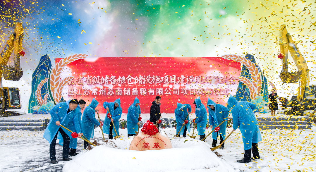 12月18日,江苏省省级储备粮仓储设施项目建设现场推进会暨江苏常州苏南储备粮有限公司新建储备粮仓储项目奠基仪式在溧阳举行。江苏省粮食和物资储备局局长胡建军、一级巡视员张生彬,溧阳市委书记叶明华,集团公司副总经理、省储备粮公司党委书记、董事长黄熙荣等参加活动。
