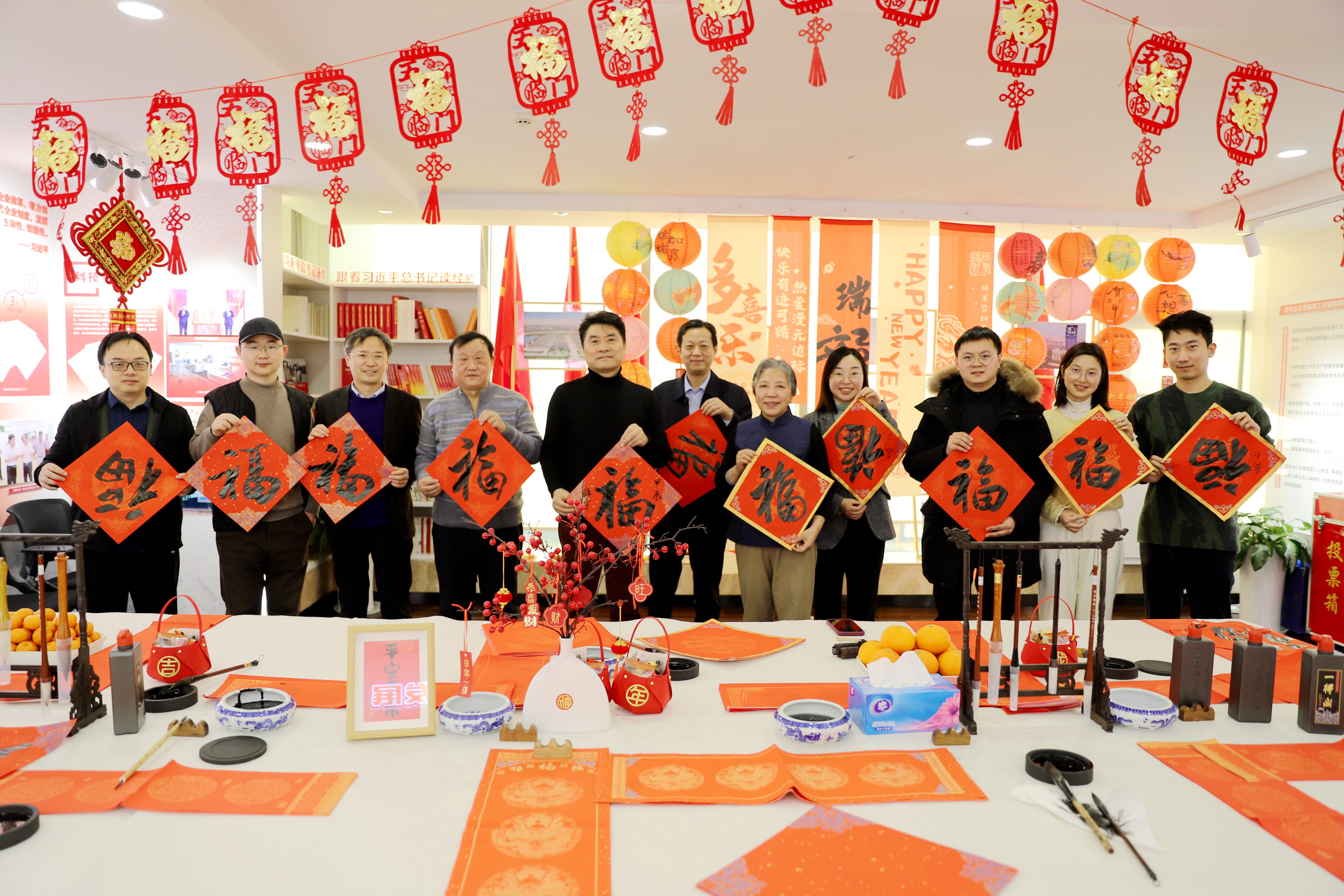 为喜迎龙年的来临,营造节日的喜庆气氛,进一步认真落实省国资委委企党支部结对共建推进会精神,加强委企支部间党建互动交流,1月25日,集团总部第一党支部与省国资委离退休干部第三党支部开展“挥毫泼墨送春联,龙飞凤舞迎新春”共建活动,省国资委离退休干部处和三支部党员代表、外请书法老师、集团青年职工代表参加活动。