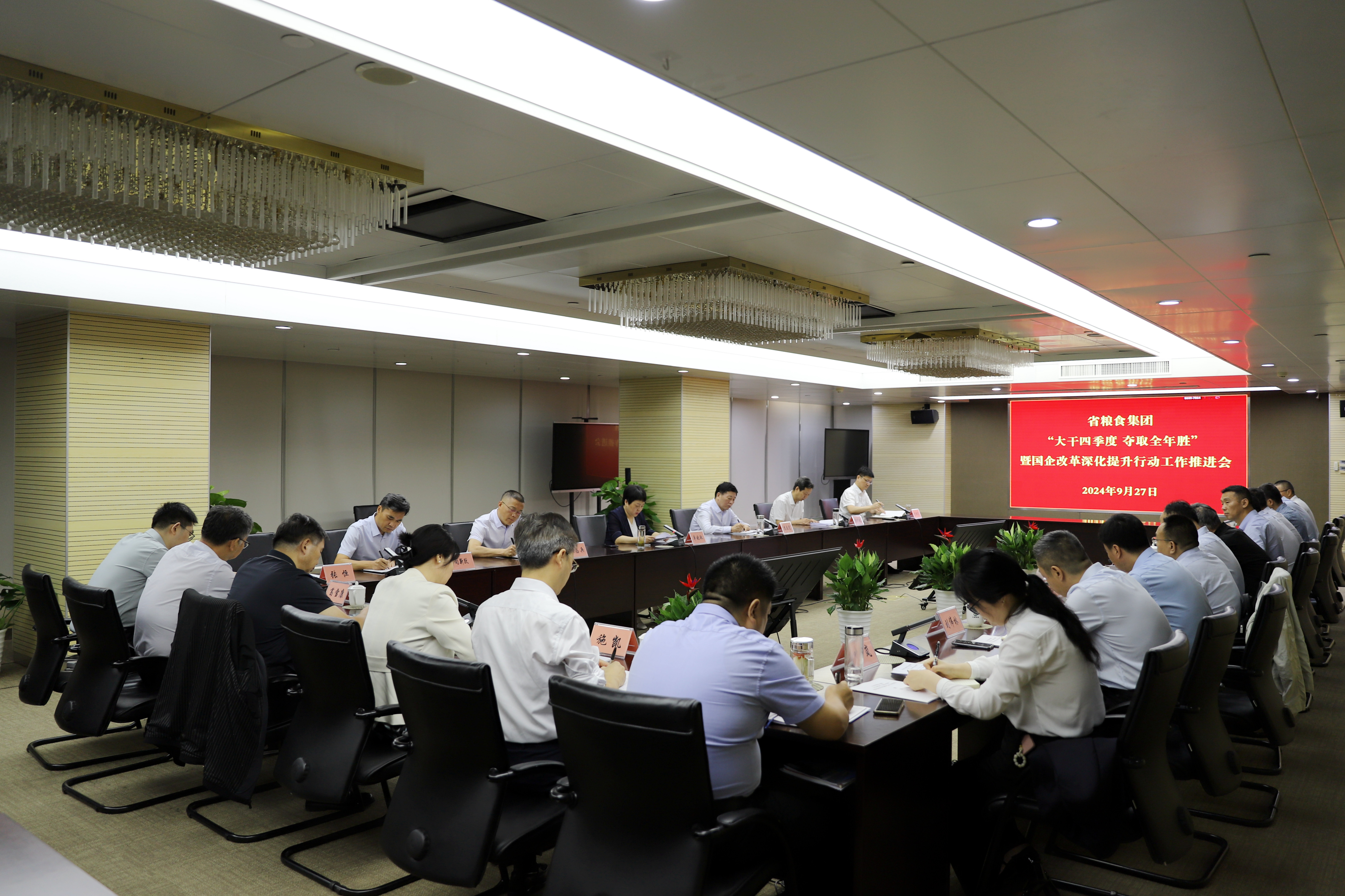 9月27日上午,省粮食集团召开“大干四季度 夺取全年胜”暨国企改革深化提升行动工作推进会,深入贯彻党的二十届三中全会精神和省委十四届七次全会精神,盘点国企改革深化提升行动,总结交流前三季度生产经营情况,部署冲刺四季度重点工作举措。集团党委书记、董事长单晓敏,总经理、党委副书记苏志富出席会议并讲话,其他领导班子成员及各企业、各部门主要负责人参加会议。