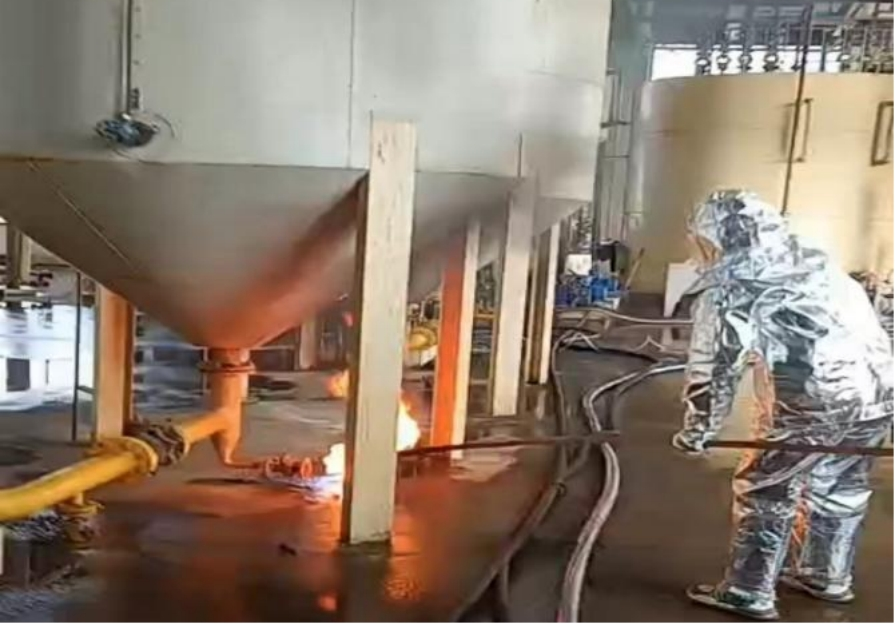 今年夏季,车间内正在进行大规模消溶工作,为保证消溶后正常的动火作业,避免安全事故的发生,“红皋粮青年安全示范岗”的青年员工们毫不退缩,他们身着防护服,在浸出车间内对消溶后的设备进行逐一点火实验,他们汗流浃背,却始终坚守在岗位上。他们吃苦在前,不畏艰难,用实际行动诠释着责任与担当。他们不仅展现了青年人的活力和拼搏精神,更是公司生产线上不可或缺的力量。他们的辛勤付出,为如皋粮油产业园的产品质量和安全生产提供了坚实保障。