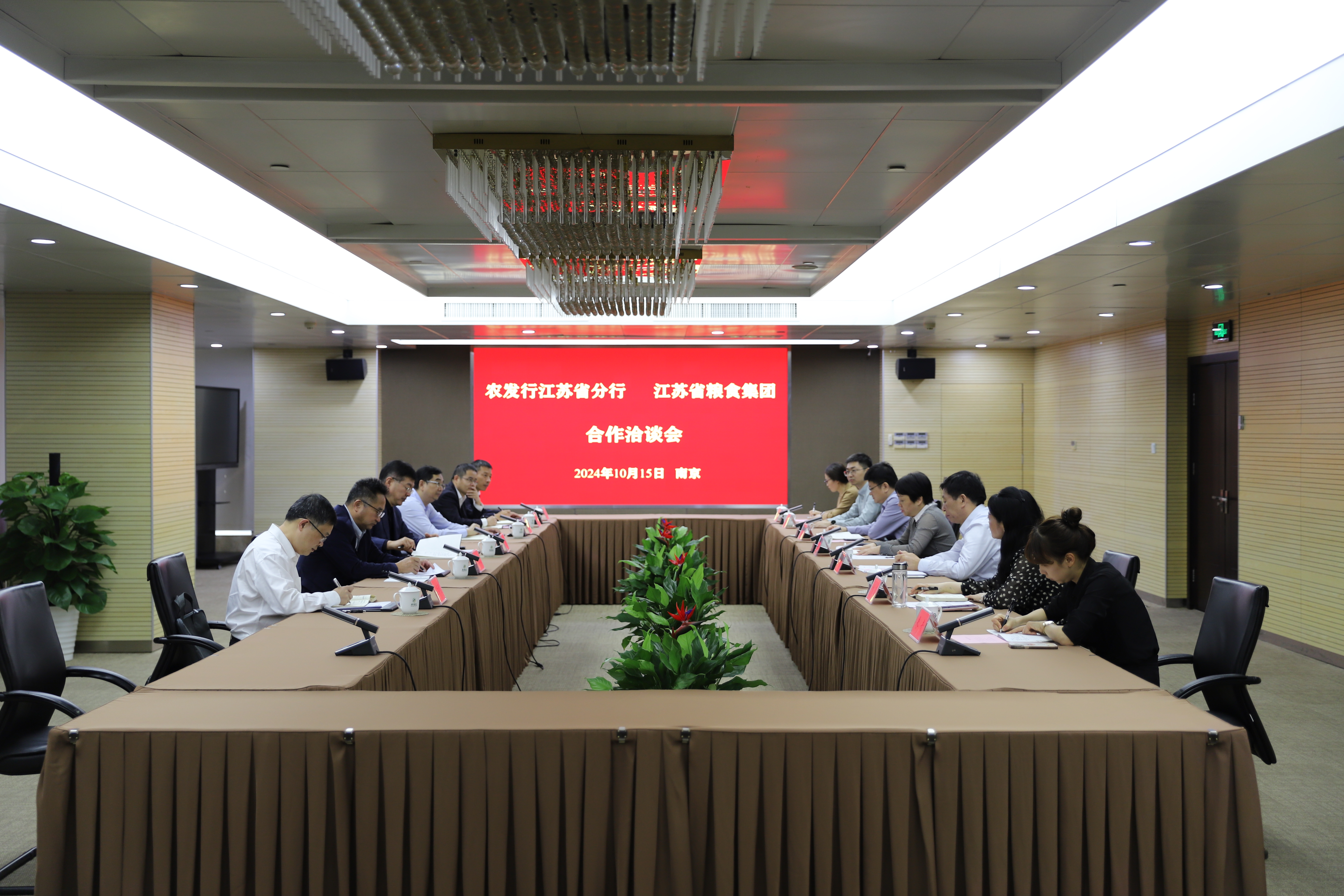 10月15日,农发行江苏省分行党委书记、行长高常青一行到访williamhill官网,集团党委书记、董事长单晓敏,总经理、党委副书记苏志富热情接待,双方围绕深化业务合作、拓展合作质效、服务粮食安全等方面进行座谈交流。农发行江苏省分行党委委员、营业部总经理徐明悦及相关业务处室负责人,集团领导黄熙荣及相关部门负责人参加座谈。